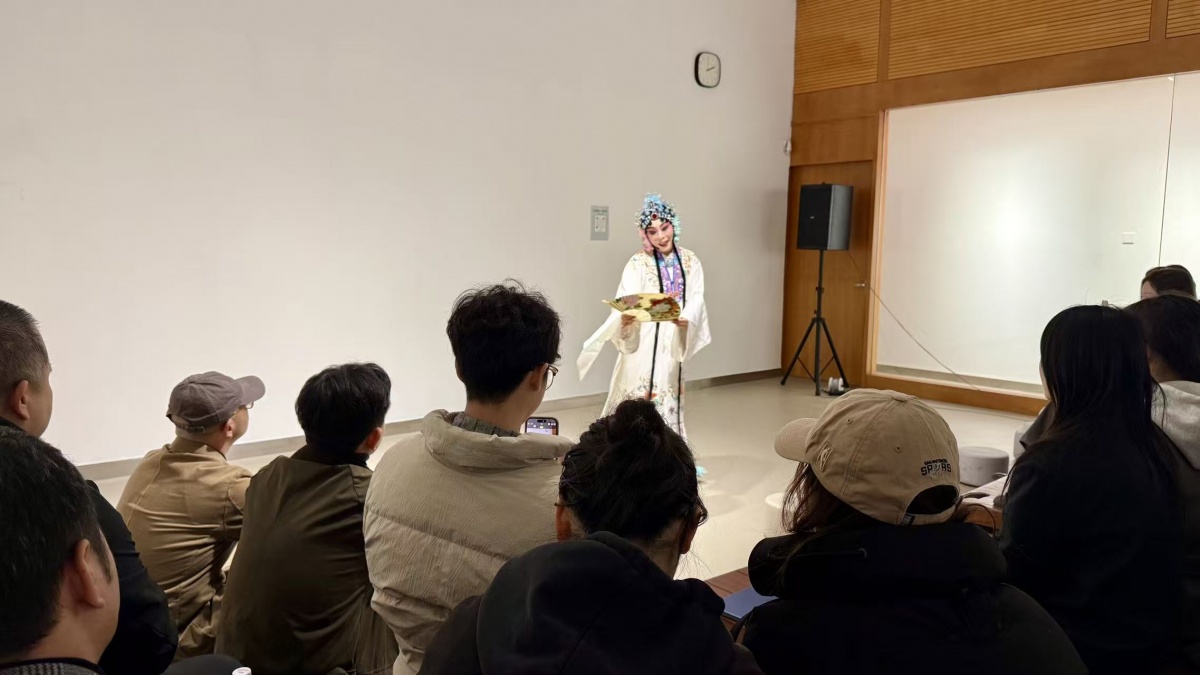 活动在北京市第十五中学音乐教师张亚娟老师的《牡丹亭·游园惊梦》昆曲表演中开始。参与本次活动的观众除了专业艺术院校的学生,也有许多来自周边社区的艺术爱好者。据了解,活动吸引社区居民的,正是炎黄艺术馆长期以来与社区在美育方面的互动,不但包括绘画、书法等传统艺术的实际体验,也包括对各类艺术展览的解读。为此他们不但准备了此次演出,以作为戏剧与美术的“对话”,也提前准备了自己感兴趣的话题与艺术家交流。